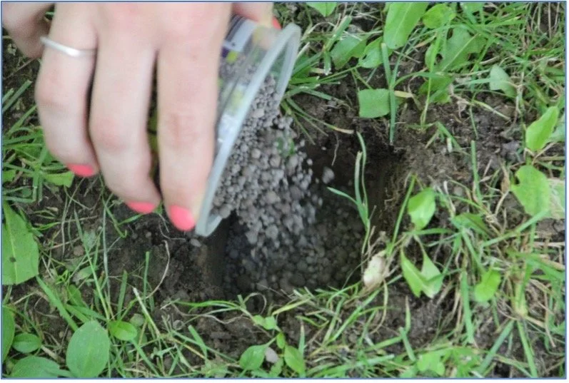 Of interest were calcium, magnesium, and manganese. The analysis showed that while this tree’s nutrient content was in the low part of the healthy range for calcium and magnesium, as compared to woodland sugar maples in Nova Scotia, it was below the healthy range for manganese. John suggested an application of pelletized lime which contains an abundance of calcium and magnesium and also trace amounts of manganese. We implemented that treatment at a rate of 7 tonnes/hectare (see photos) in August 2015.